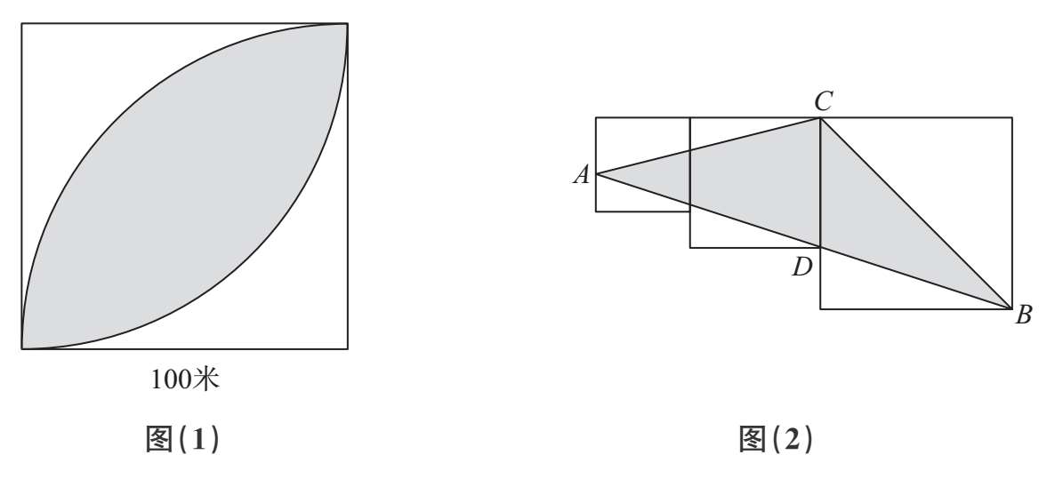 1.某校将每年的三月份的第一周定为植树周。今年该校在市郊的一块如图(1)所示边长为100米的正方形山地上植树,图中的阴影部分是一个小水库。同学们要在每平方米内种一棵树,每天种树1075棵。问同学们几天能完成植树任务?(π取3.14)