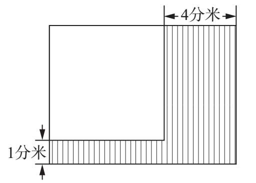 如图所示,一块长方形钢板,长截下4分米,宽截下1分米后,成了一块正方形钢板,面积比原来减少了49平方分米。原来长方形钢板的面积是多少平方米?