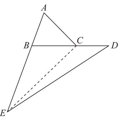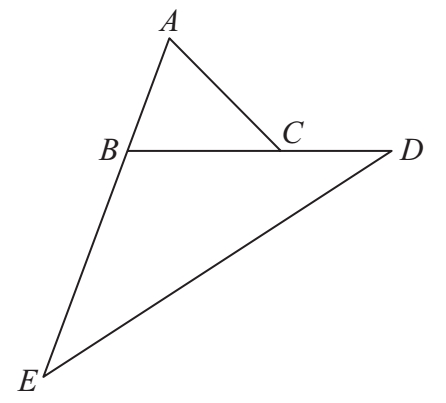 1.已知三角形ABC的面积为1,BE=2AB,BC=CD,求三角形BDE的面积。
