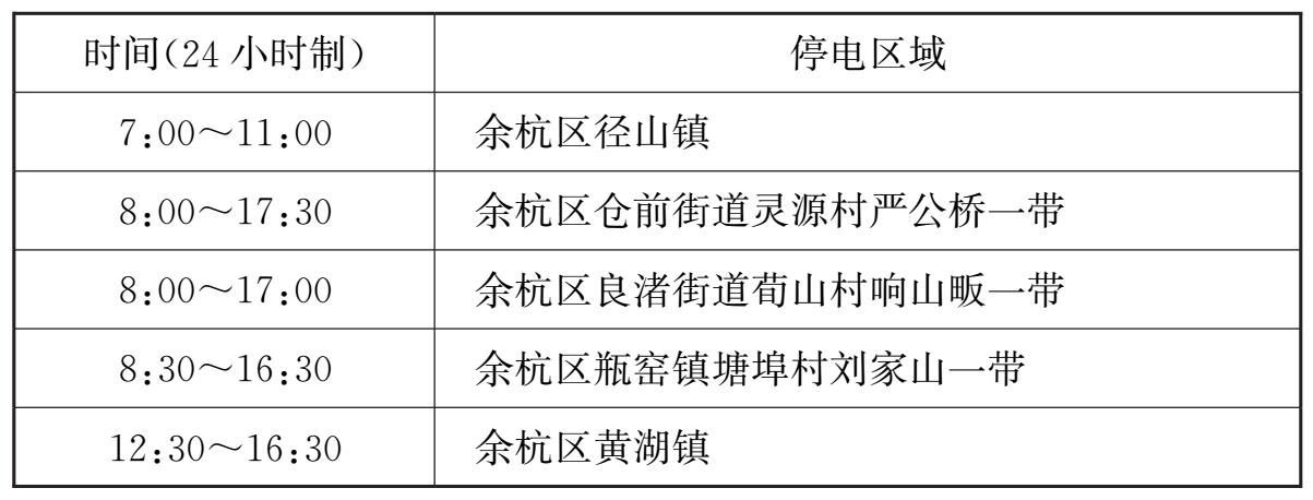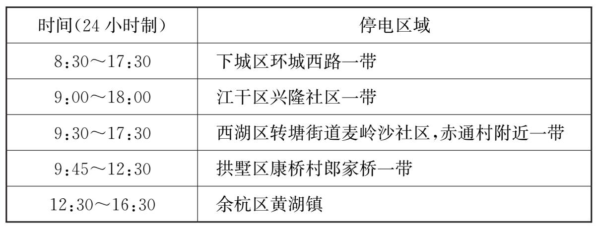 2.以下为2017年5月2日杭州余杭区的部分地区停电通知: