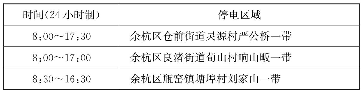 以下为2017年5月2日杭州余杭区的部分地区停电通知: