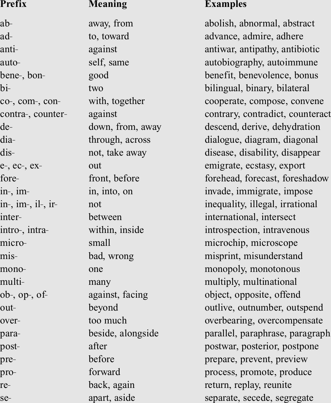 词的构成(word parts)可以帮助考生理解生词的意思。很多英文单词都含有古英语、希腊语和拉丁语词根。如果知道生词某一部分的意思,就可以对整个词的意思有大致了解,尤其是在结合上下文的情况下。