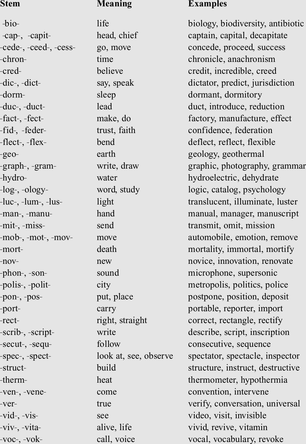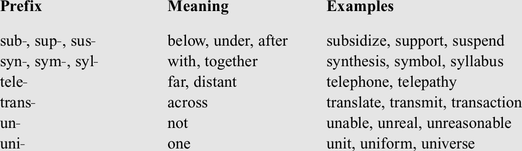 记住下列常用前缀和词根。你能添加更多的例子吗?