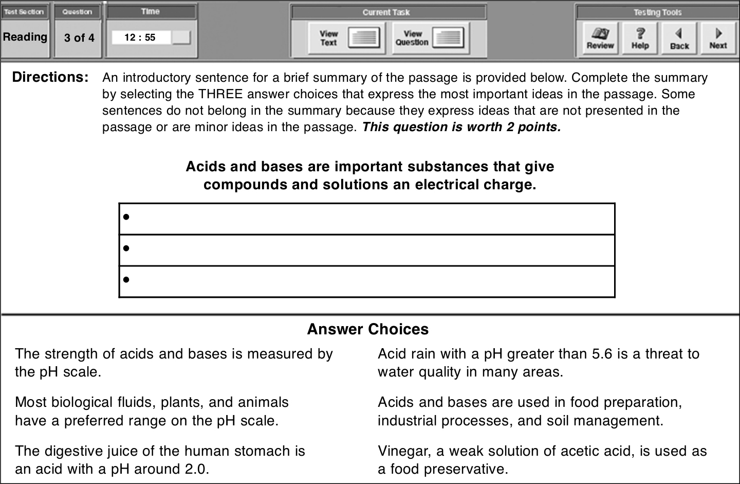 对于这类题型,考生需用鼠标拖动文字以完成摘要或表格。如下所示: