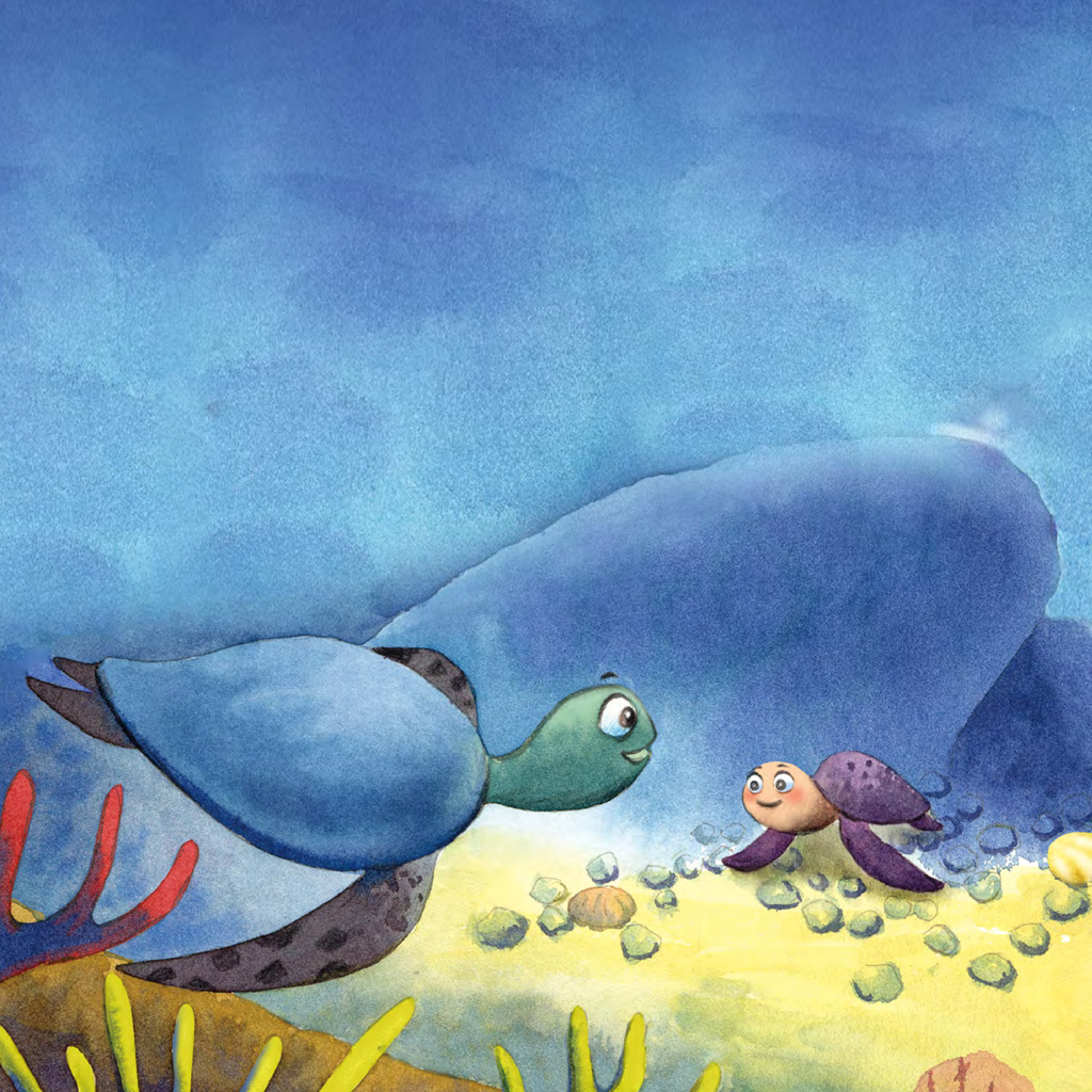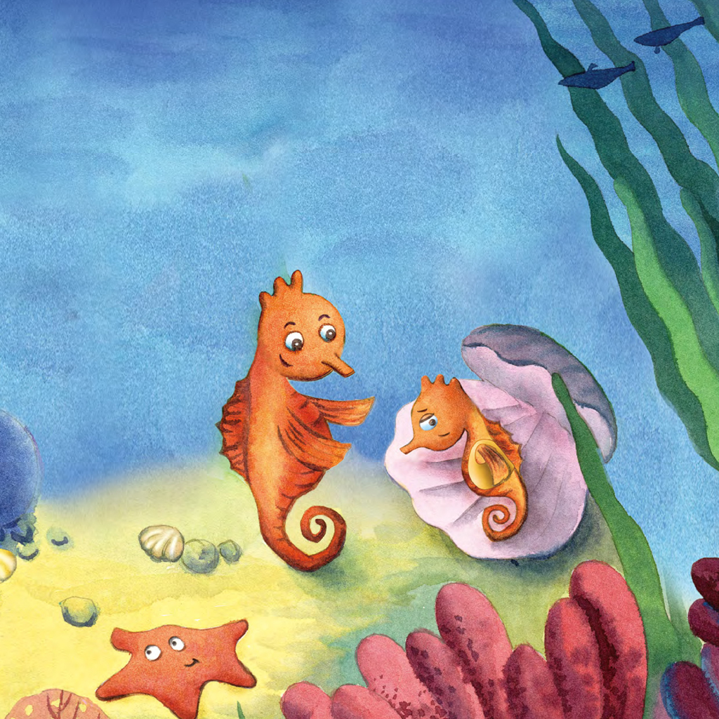 在一片大海的最深处,有珊瑚丛,珊瑚丛里有色彩斑斓的各种热带鱼穿梭,珊瑚丛长在一个大岩石的上边,就在岩石的下边住着小海龟一家。海底沙子上有一些零零散散的各类贝壳,岩石不远处的海藻丛林中,住着小海马豆丁和他的爸爸。