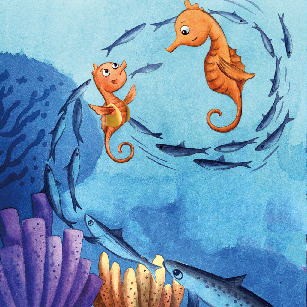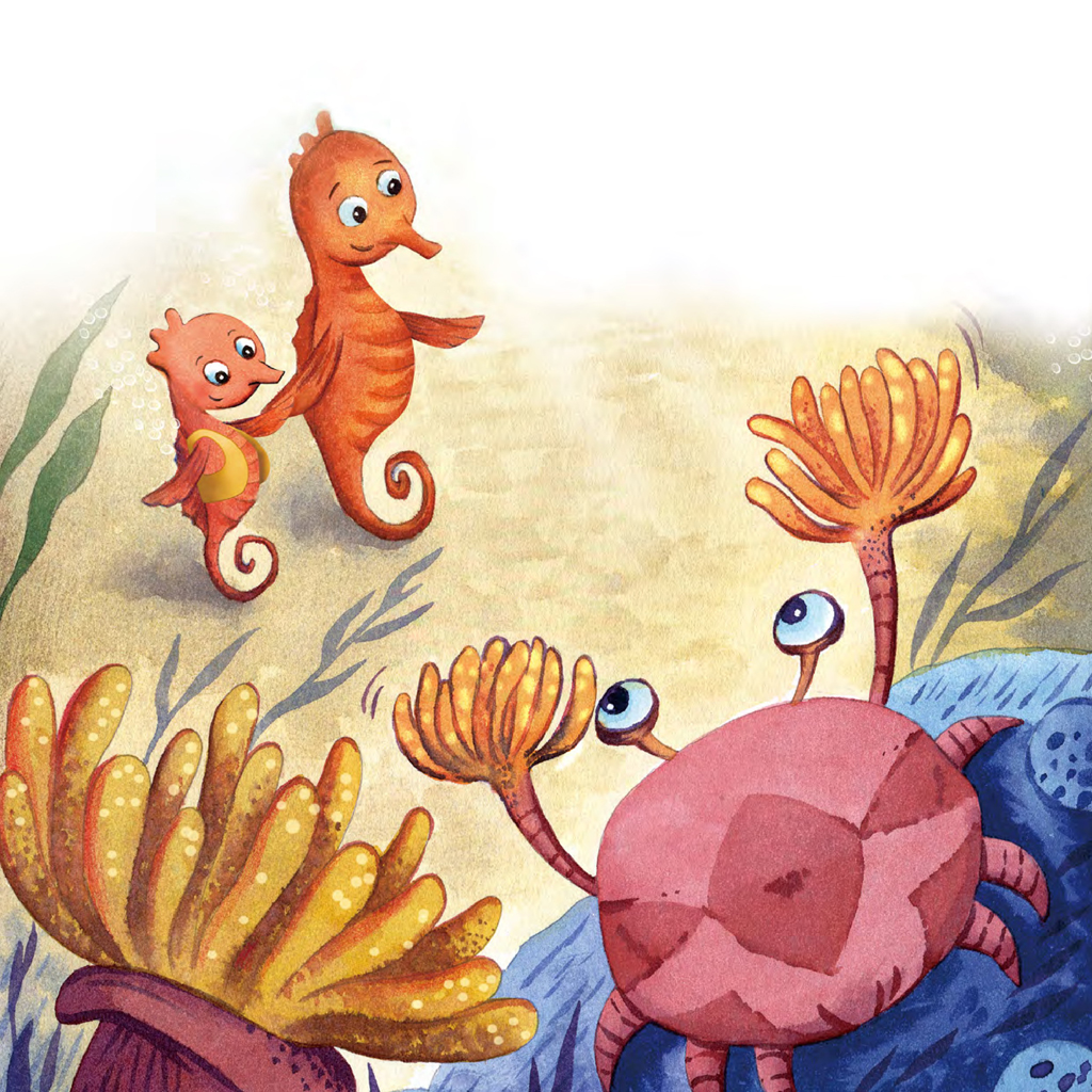 这时,小海马爸爸指着前边的拐弯处,说:“看,前面就到了。”