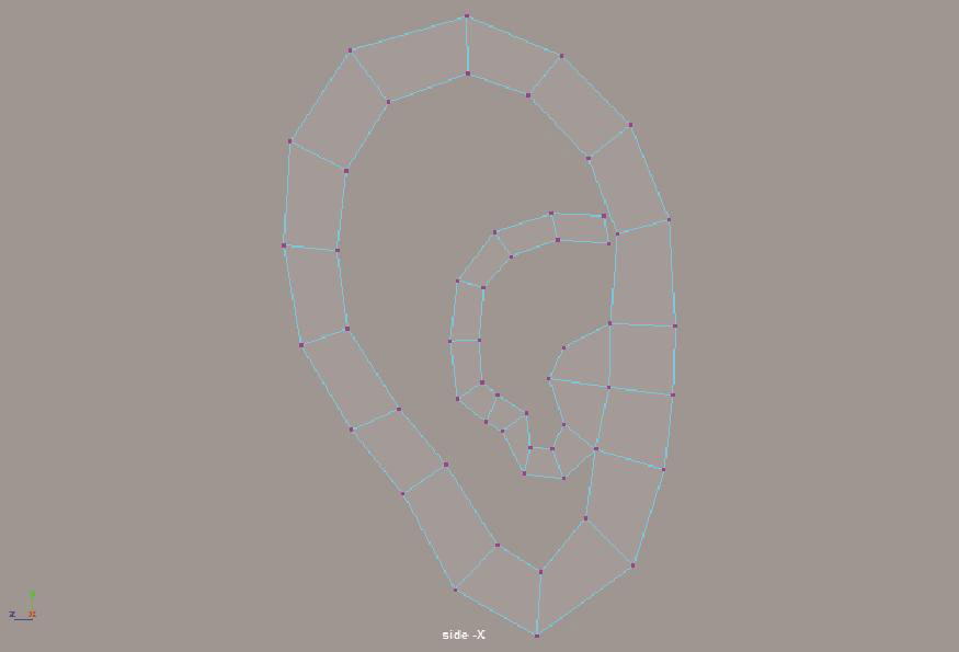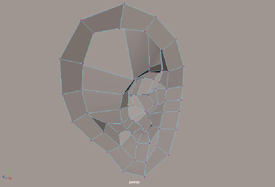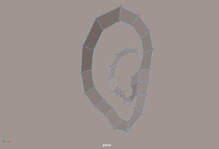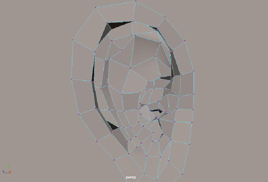 05 在“透视图”中仔细调整顶点的前后位置,制作出耳朵轮廓的厚度,如图4-171所示。