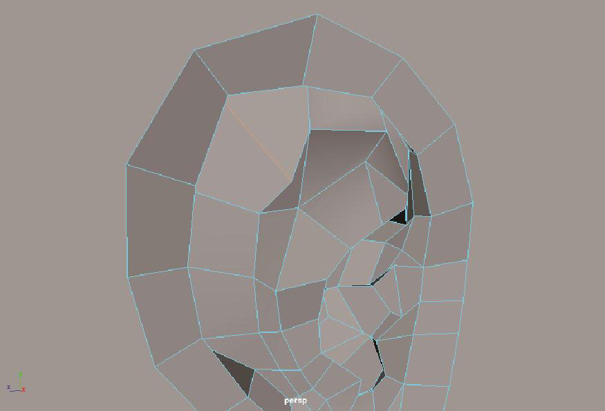 11 在“透视图”中,调整顶点的位置,细化耳朵的结构,如图4-178所示。并按下快捷键3,观察耳朵模型光滑后的效果,如图4-179所示。