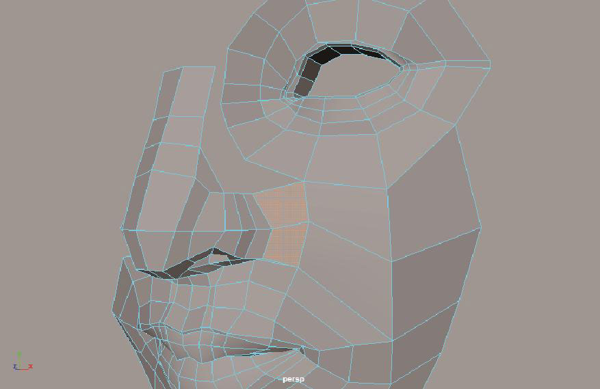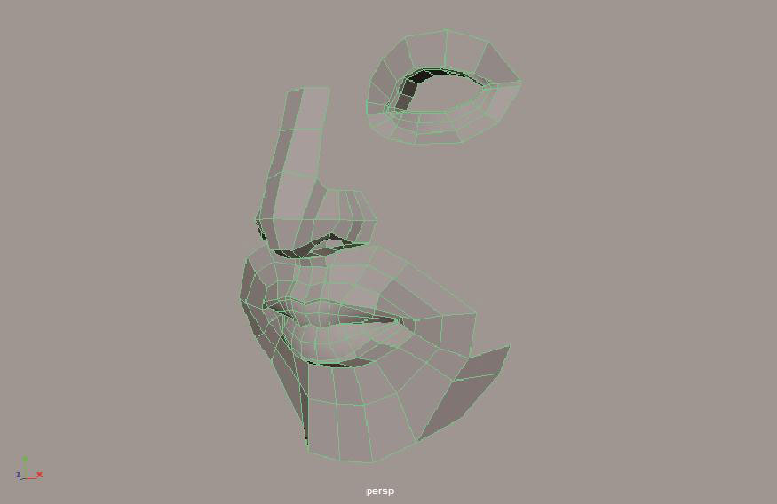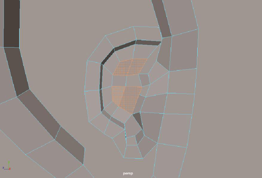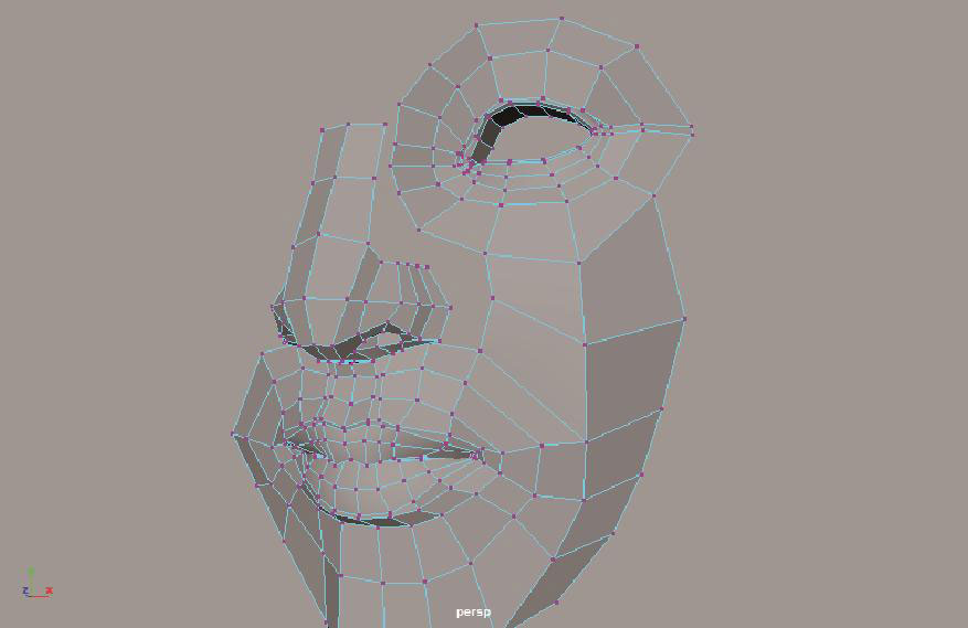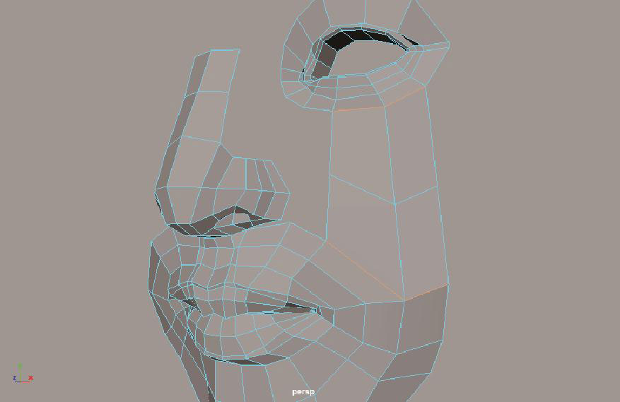 06 以同样的方式制作出眼眶的外围结构,并调整顶点的位置至图4-149所示。