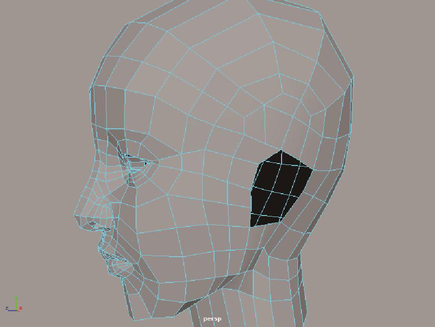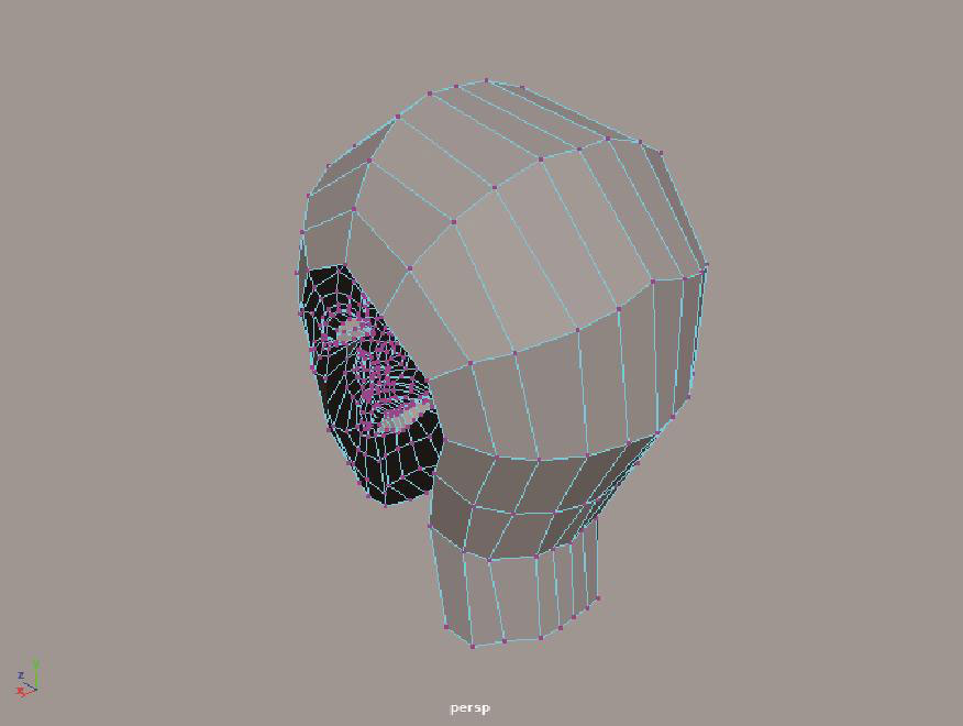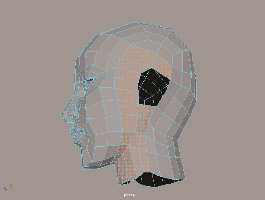 03 使用相似的方式对角色头部两侧的边进行缝合,完善头部模型,如图4-190所示。