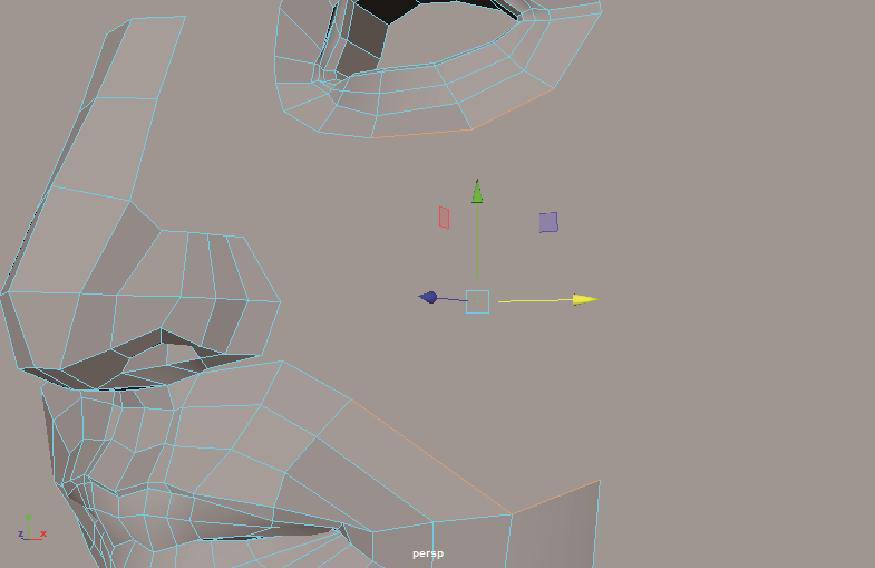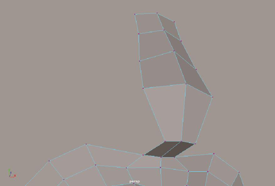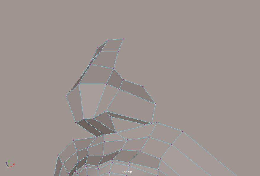 02 使用“挤出”工具对角色头部两侧的线进行挤出操作,并焊接对应的顶点,如图4-189所示。