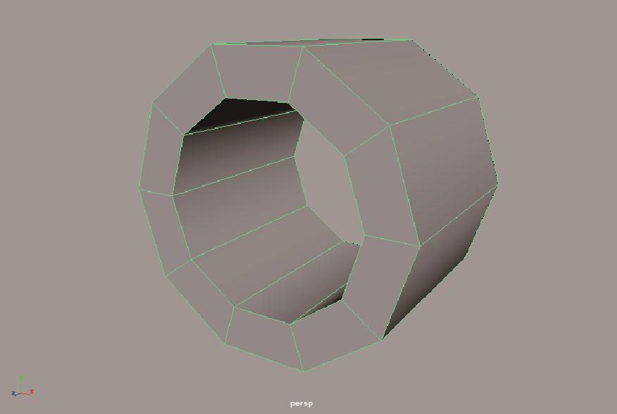 01 单击“多边形”工具架上的“多边形管道”图标,在场景中创建一个多边形管道,如图4-166所示。