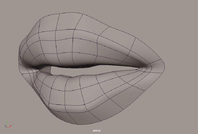 15 本实例的嘴唇模型最终完成效果如图4-125所示,光滑后的效果如图4-126所示。