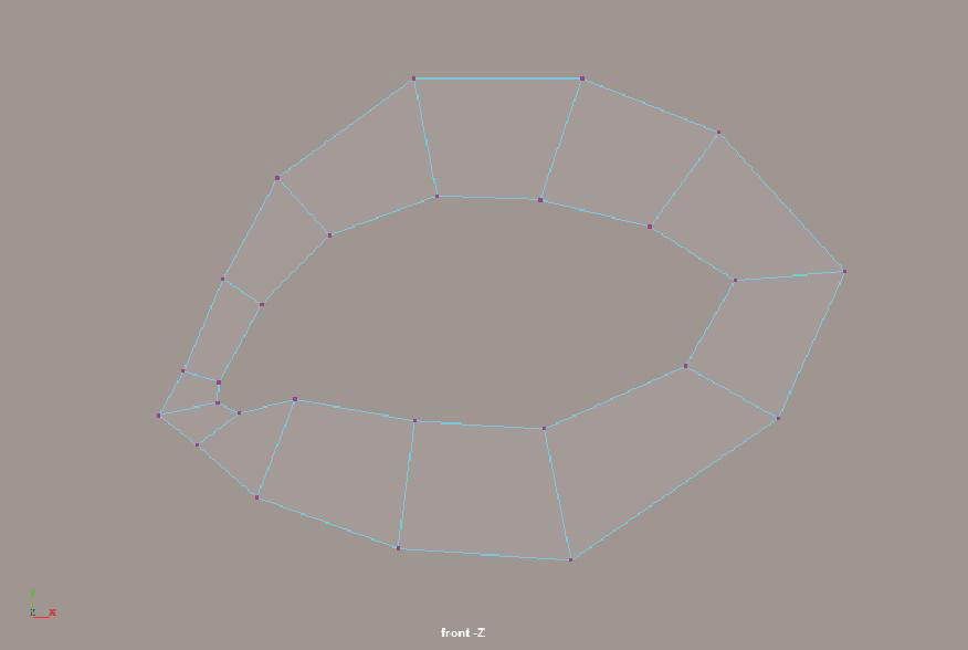 04 进入“顶点选择”组件,调整顶点的位置至图4-106所示,制作出嘴唇的大致形状。