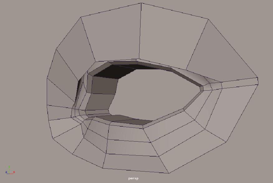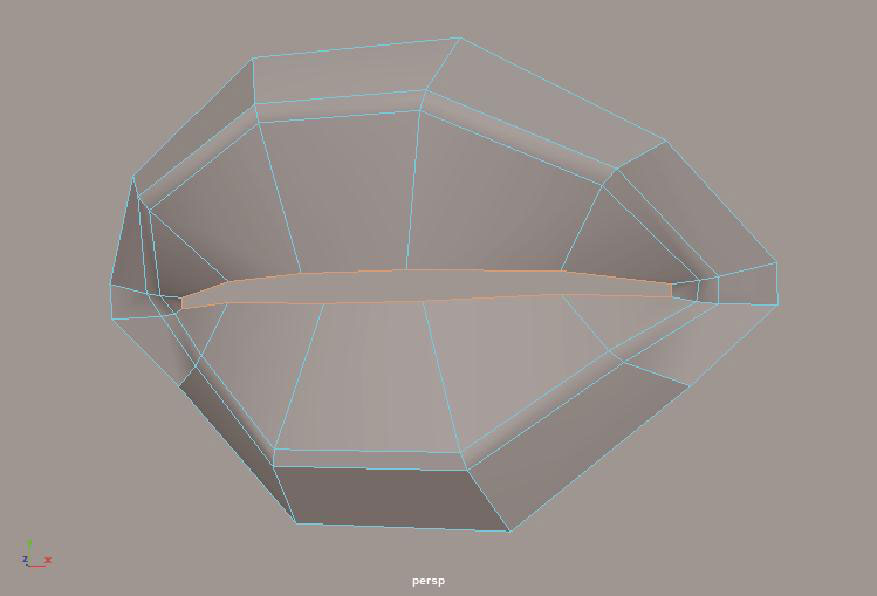 08 选择图4-113所示的边,对其进行“挤出”操作,并调整点的位置至图4-114所示,制作出嘴唇里面口腔的结构。