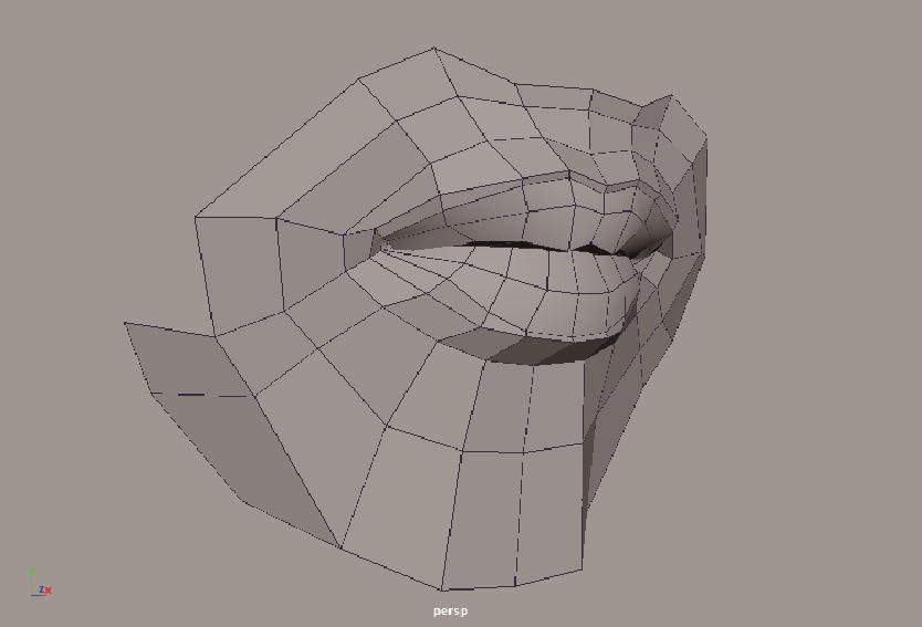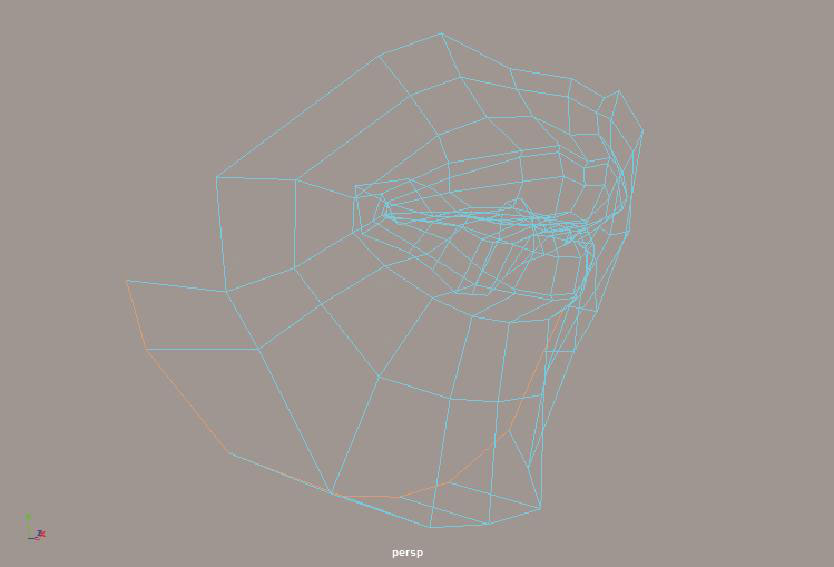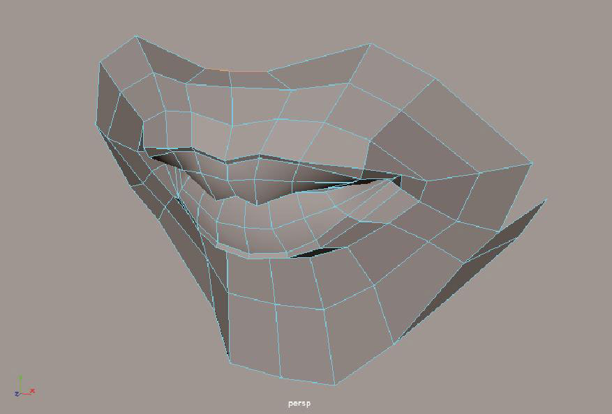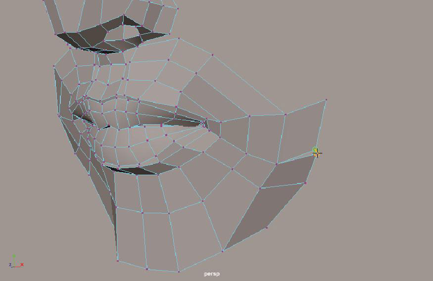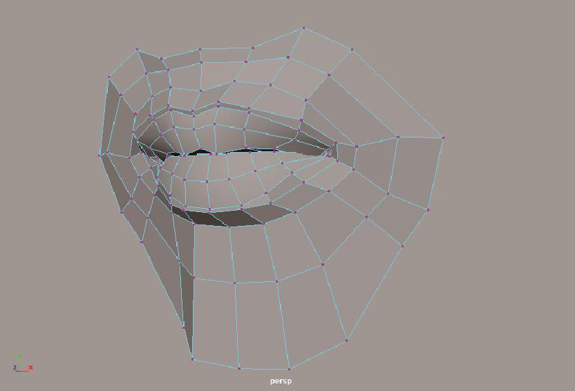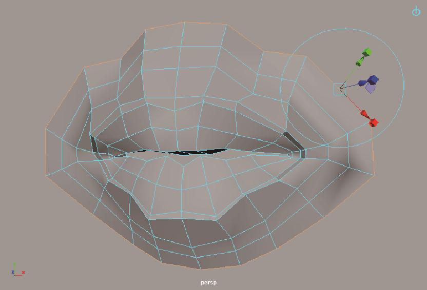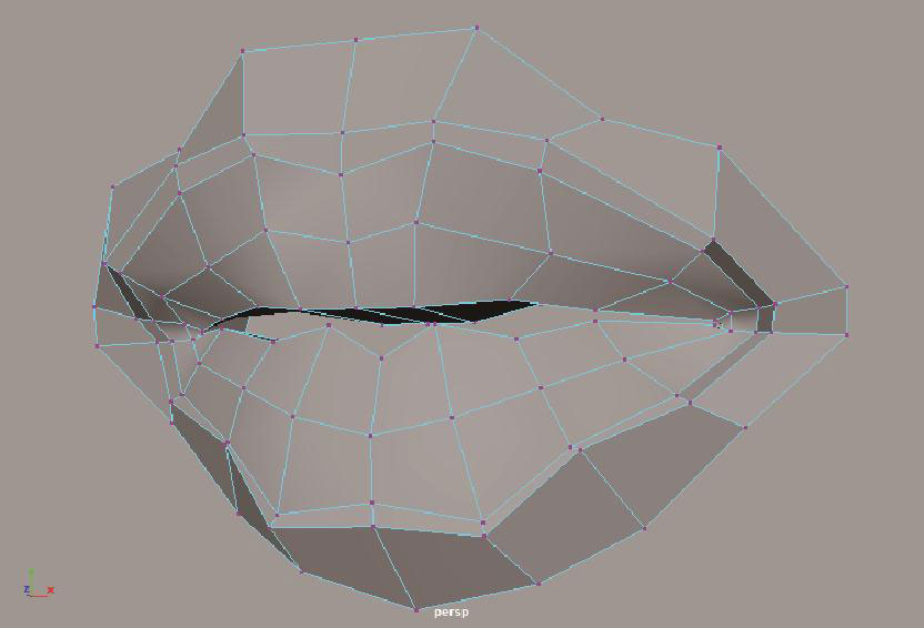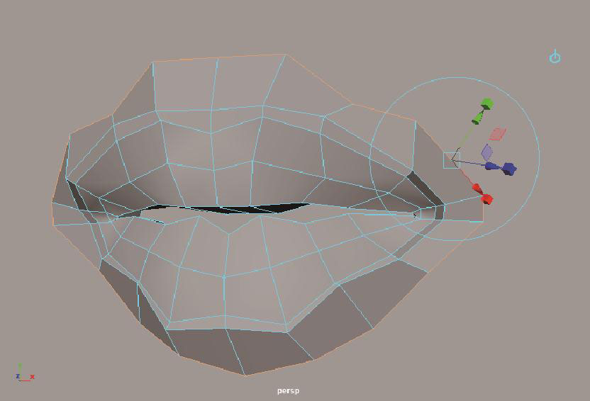 13 在“顶点选择”组件中,继续调整顶点的位置至图4-122所示,制作出嘴唇周围的结构。
