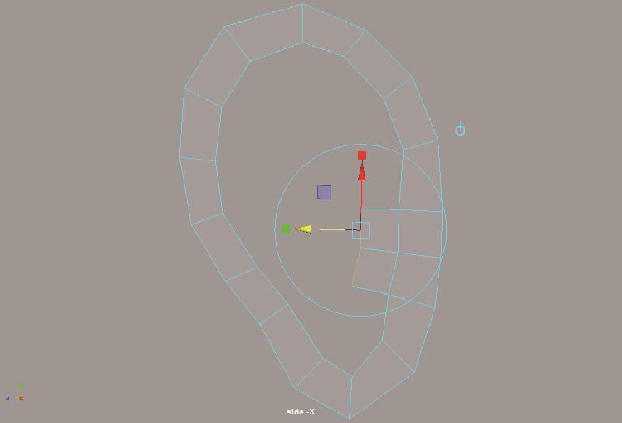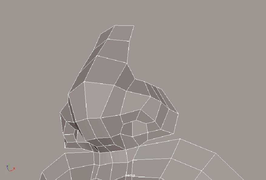 03 进入“顶点选择”组件,调整模型的顶点位置至图4-168所示,制作出耳朵的轮廓。