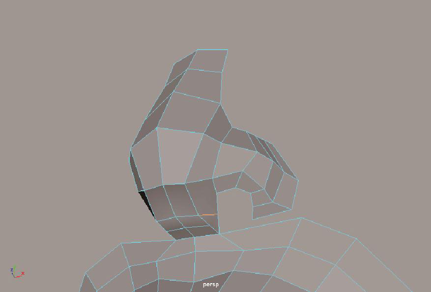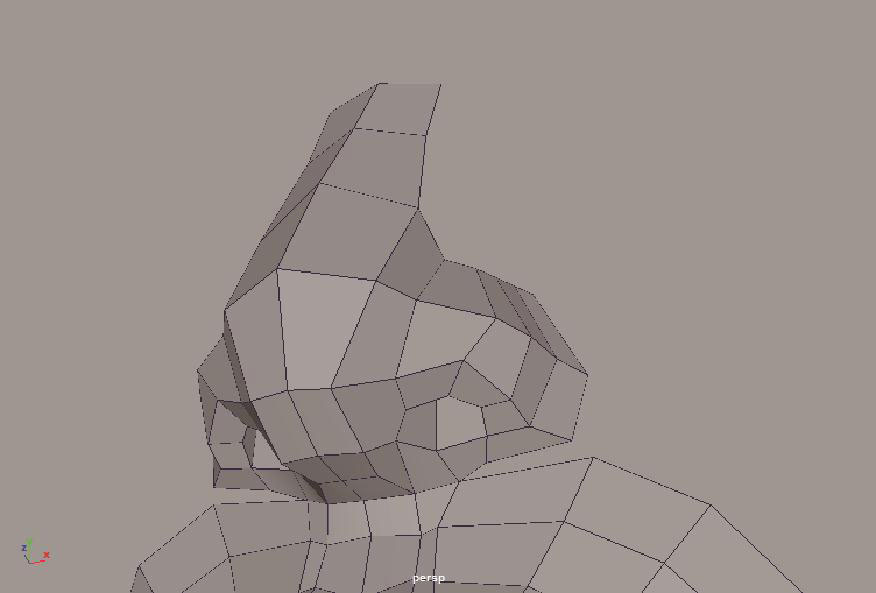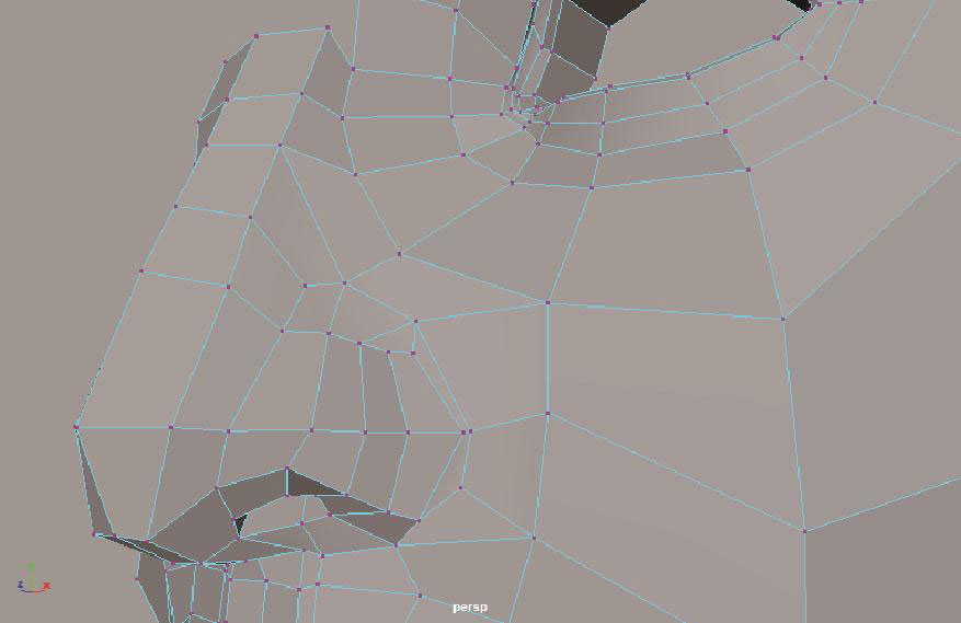 06 调整模型的顶点,并再次细化鼻子底部的布线结果至图4-135所示。