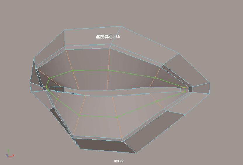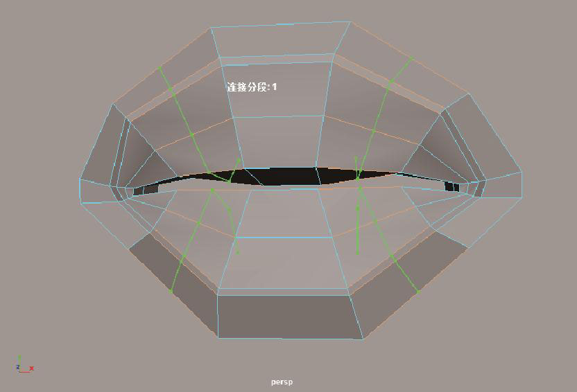 05 进入“边选择”组件,使用“连接”命令对当前模型进行加线操作,如图4-107所示。并继续调整嘴唇的顶点至图4-108所示。