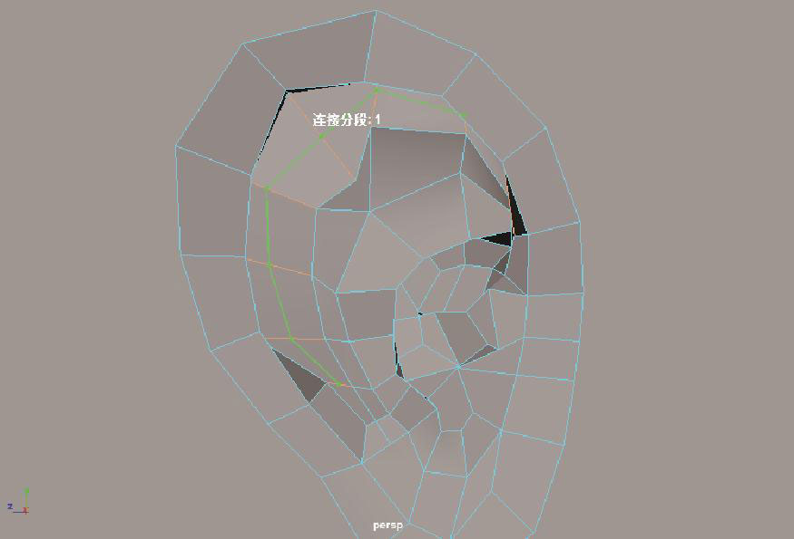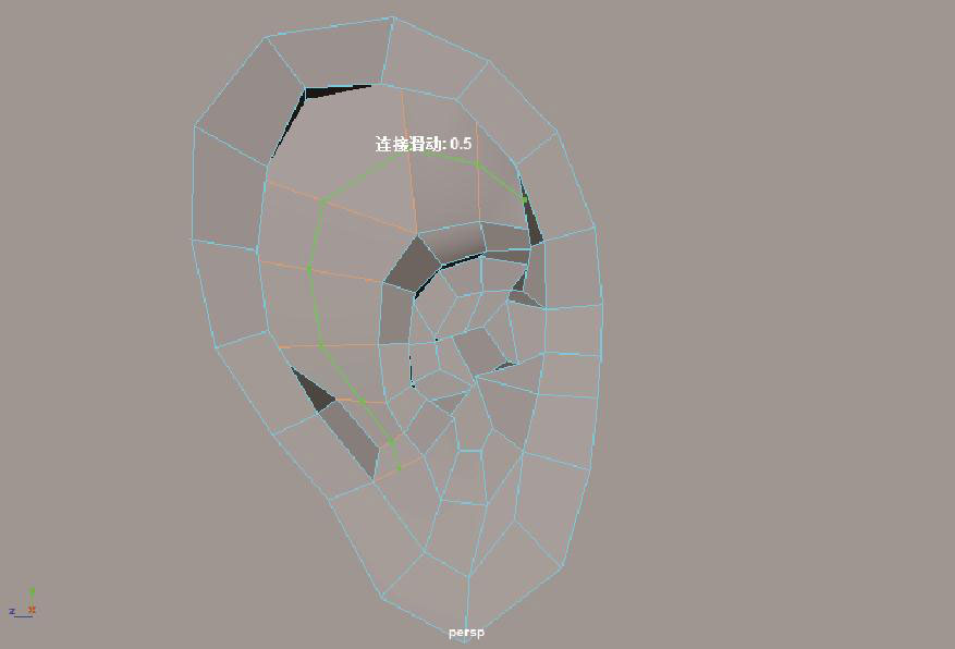 13 使用“连接”工具对图4-181所示的边进行加线操作,细化耳朵结构,并调整顶点的位置至图4-182所示。