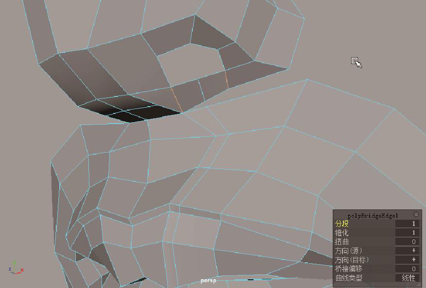 05 使用“桥接”工具连接鼻翼和脸部相关的边,如图4-160所示。