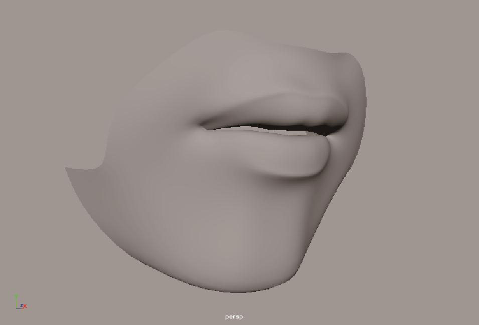 11 进入“顶点选择”组件,调整模型的顶点位置至图4-118所示,丰富嘴唇的细节。调整完成后,可以按下快捷键3,观察嘴唇模型细化后的模型状态,如图4-119所示。