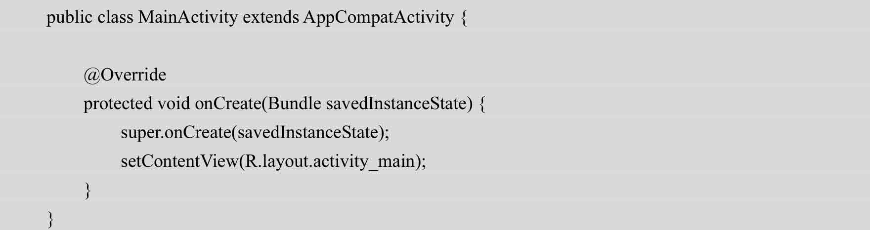 当然,我们的目标并不仅限于在布局文件中修改文字,还要能够在代码中修改文字的内容。再次打开代码文件MainActivity.java,看看里面有什么内容。该java文件中MainActivity类的内容如下: