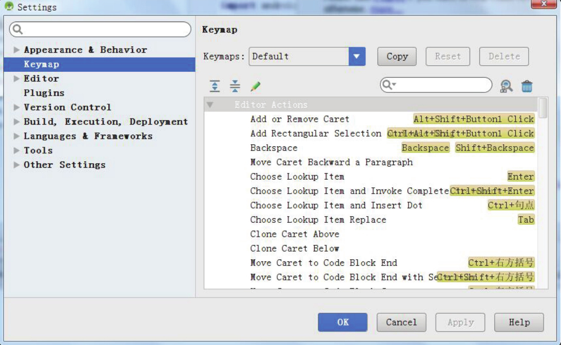当然,每个人习惯的快捷键不尽相同,对于Android Studio来说也不例外,为了更好地使用快捷键,最好手工修改快捷键。手工修改快捷键的方法:依次选择菜单File→Settings,在弹出的设置窗口中选择Keymap,窗口右侧出现如图1-28所示的快捷键列表。