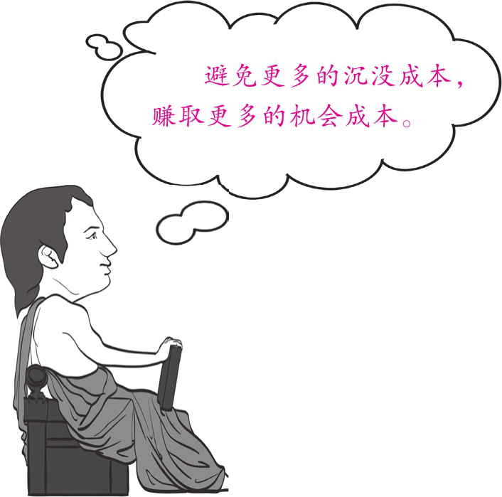 大卫·休谟老师神秘地一笑:“各位,其实,这里面隐藏着一个关于逻辑学的诉求:尽快分手、辞职,是为了避免更多的沉没成本,赚取更多的机会成本;而坚持下去,则是出于前期投入,无法放弃沉没成本,以为时间越久,获得价值的概率越高,也可以看成如果有一个确定性可以获得价值的提示,大多数人会选择留下来继续。”(见图3-7)