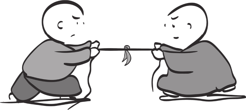 张萌点点头,弗里德里希·弗雷格老师说得有道理,就像拔河一样,双方人都很多,但是一拨人拽一边,劲儿不往一处用,肯定就会僵持住。(见图4-1)