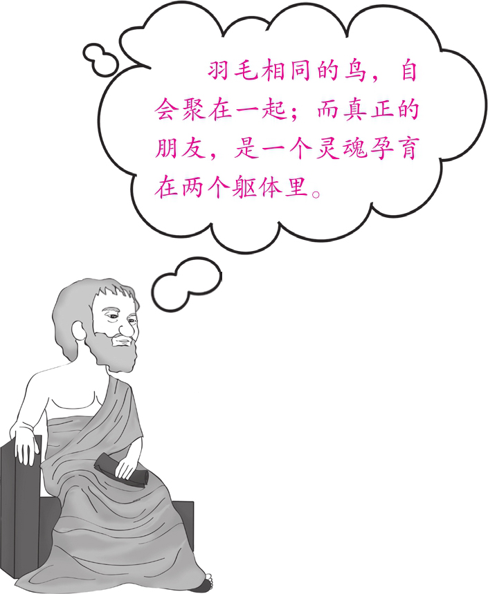 亚里士多德老师又搬出了自己著名的语句:“羽毛相同的鸟,自会聚在一起;而真正的朋友,是一个灵魂孕育在两个躯体里。即便是知心好友,你对他也是有所求的,那便是心灵上的需求。因此,在社交过程中,逻辑学的运用是不可避免的。”(见图1-3)
