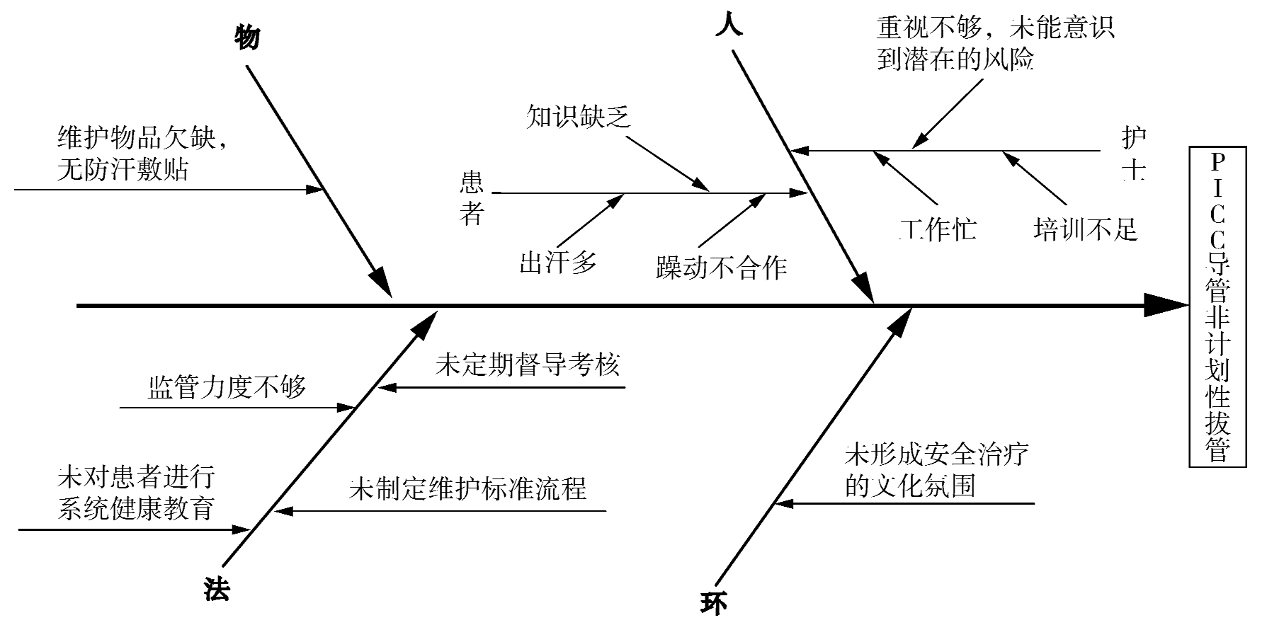 图2-7 PICC非计划性拔管原因分析鱼骨图
