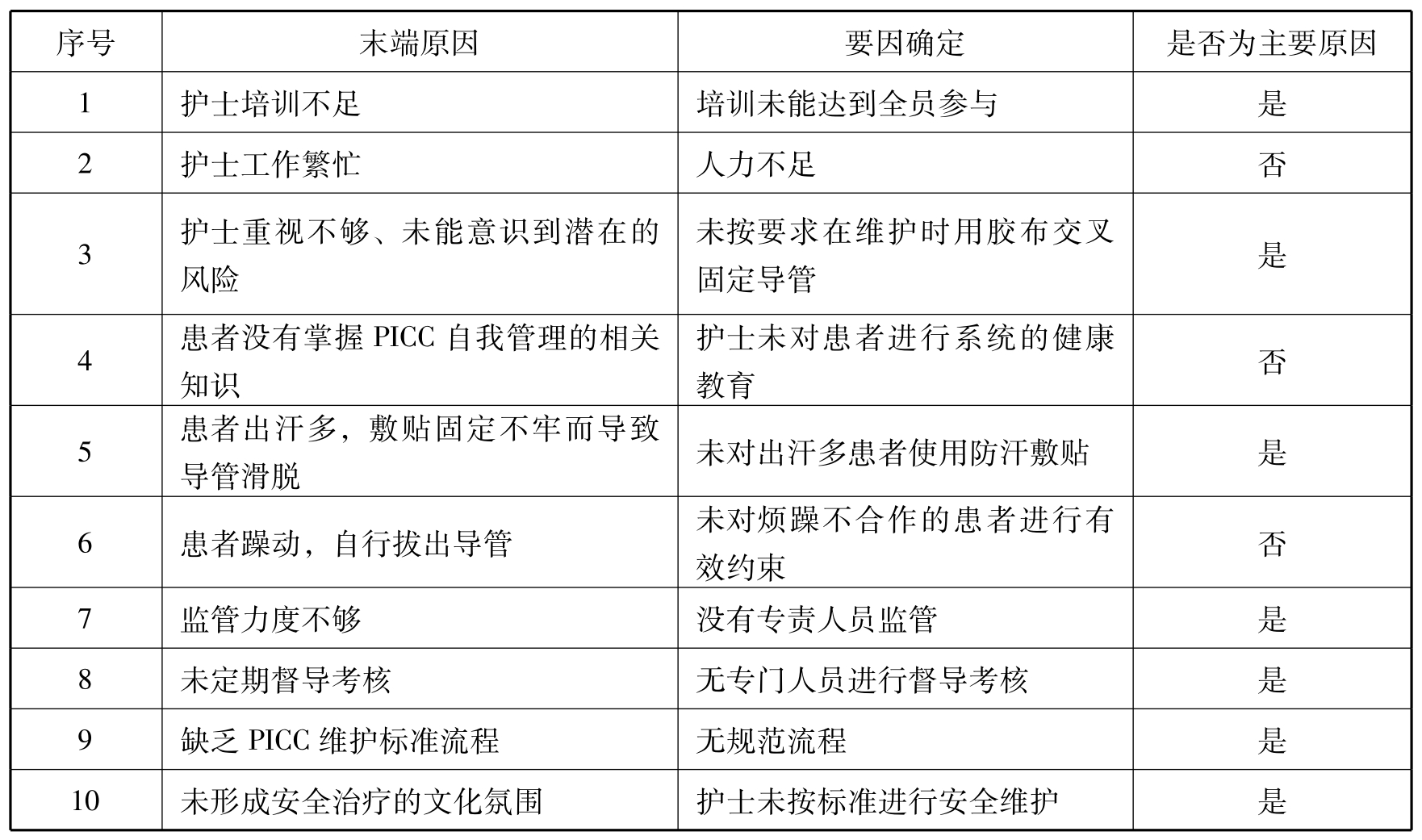 表2-5 降低PICC非计划性拔管率的要因确定表