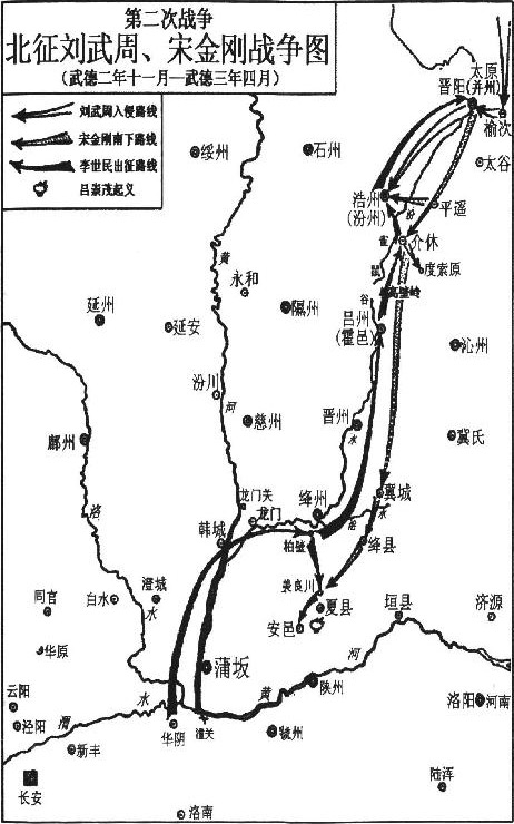 宋金刚进攻龙门受阻后,尉迟敬德、寻相向他建议,河东向为长安粮草主要供应基地,若向南攻略,既可造成长安恐慌,又可逼向风陵渡向潼关施压。宋金刚听从二人之言转向南攻,为了防备龙门唐军出击,从晋州到龙门或依地势或依老城设了数个营寨,驻兵不等以呼应防御。