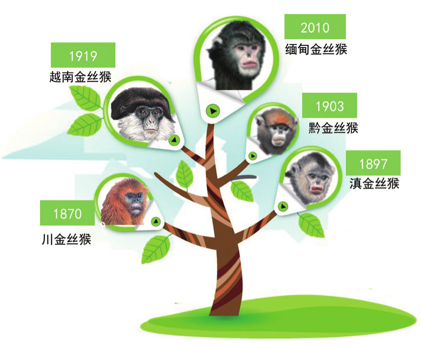 虽然傈僳族人长期与滇金丝猴打交道,但把滇金丝猴介绍到世界的却是几名外国人士。1890年,两名法国人,索利(R. P.Soulie)和彼尔特(Monseigneur Biet)在云南省德钦县境内组织当地猎人捕获了7只滇金丝猴,并将其头骨和皮毛送到巴黎博物馆。1897年,法国动物学家米勒·爱德华兹(Milne Edwards)根据这些标本,对滇金丝猴首次进行科学描述,将其正式命名为“ Rhinopithecus bieti ”。滇金丝猴的种名“Bieti”是其标本的采集人法国传教士“Monseigneur Biet”的姓,这是国际动物命名法的通则之一,以示纪念。至此,滇金丝猴这一物种才被世人知晓!除了中文名字、拉丁名外,滇金丝猴还有其英文名“Yunnan snubnosed Monkey”(云南仰鼻猴)或“Black-and-white snubnosed monkey”(黑白仰鼻猴),更符合它的特征。