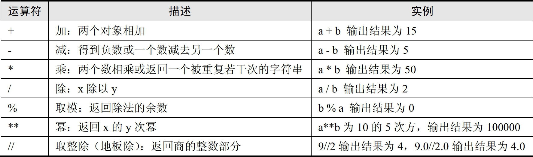 表2-1为算术运算符的描述和实例。假设变量a为10,变量b为5。