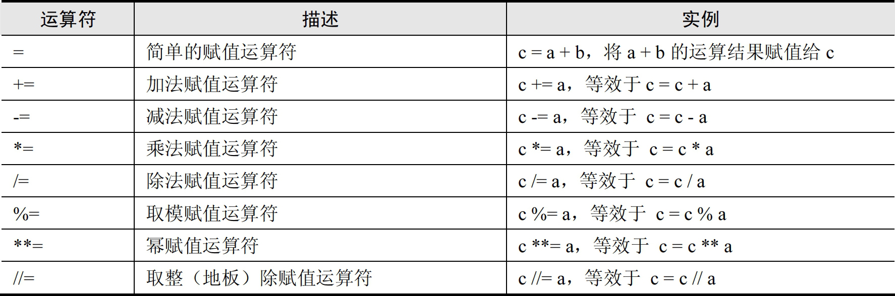 表2-3为赋值运算符的描述和实例。假设变量a为10,变量b为20。
