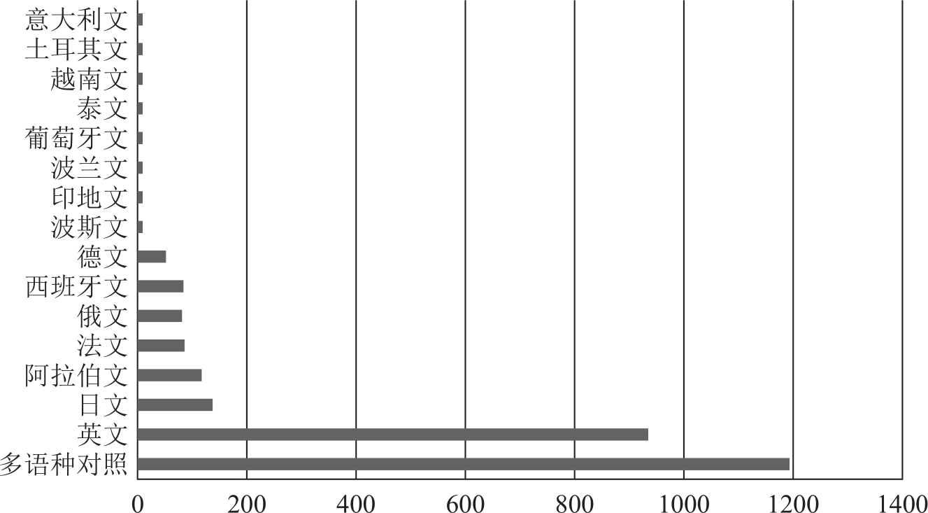 CIP数据统计显示,截至2016年12月27日,有关出版单位共使用26种语言申报出版2 664种本土外文图书,较“十二五”时期走出去图书年均出版量增加了802种。语种分布上,多语种对照占据榜首,国际通用语言英文稳居第二,日文位列第三,得益于“一带一路”倡议和“丝路书香工程”,2016年阿拉伯文图书实现了快速增长,以112种挺进前四。