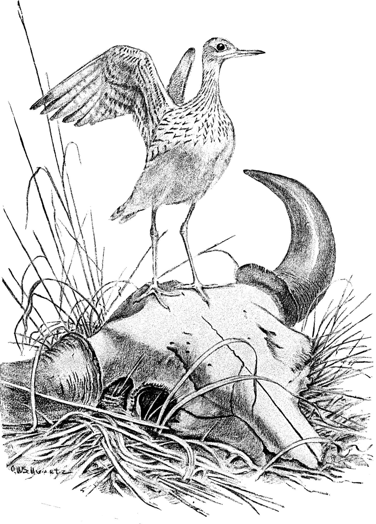 如果你的视觉很好,你就能在空中寻找到它。它抖动着翅膀,在绒毛般的云层中盘旋着。如果你的耳朵不大灵敏,就不要去听它,只要盯着栅栏的桩子。马上,一道银色的闪光会告诉你:在那根桩子上,高原鹬已经落了下来,并且收起了它长长的翅膀。不管发明“文雅”这个词的人是谁,他肯定曾经看见过高原鹬合翅的动作。