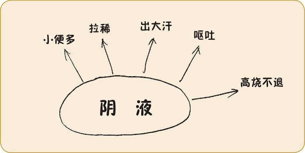 小便多、拉稀、出大汗、呕吐和高烧不退,都会损耗身体里的阴液。所以如果上吐下泻,到了医院医生都会给我们挂葡萄糖,怕脱水。一般身体在比较正常的情况下,除了出大汗,其他病理性的现象还是比较少的,所以我们最常损失阴液的方式就是出汗!