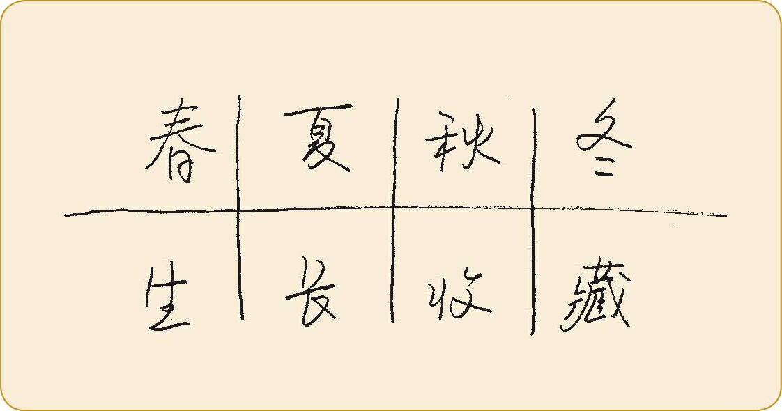 《黄帝内经》中讲到,春天要生,夏天要长,秋天要收,冬天要藏。