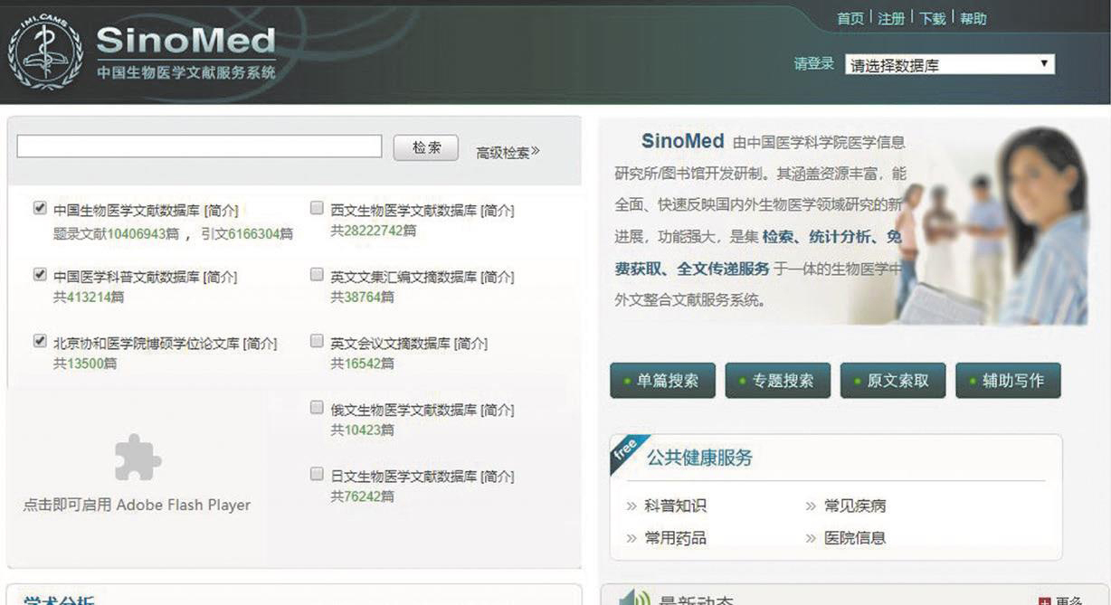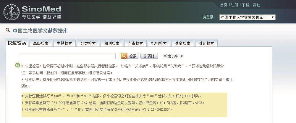 中国生物医学期刊文献数据库是解放军医学图书馆研制开发的文摘目录型数据库,是目前中国内地生物医学领域收刊齐全,更新速度快的大型专业文献数据库,是国家卫生部门认可的重要检索工具之一。属文摘数据库,半年更新一次。CMCC更新速度快,收录期刊全(1300余种),可弥补SinoMed时滞长的缺点,特别有利于课题的查新和追踪检索,界面比较友好,类似于OVID平台,但是CMCC没有主题词标引。