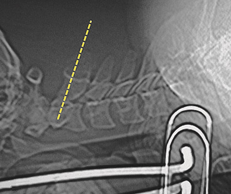 图3-3-25 经椎板间隙入路分段穿刺图像