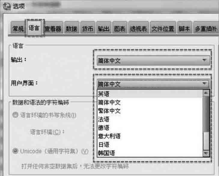 “选项”窗口是对SPSS内部属性进行设置的窗口,初学者不用浪费过多的精力,只要掌握如下两点,就够用了,一是语言(见图5-6),二是透视表(见图5-7)。