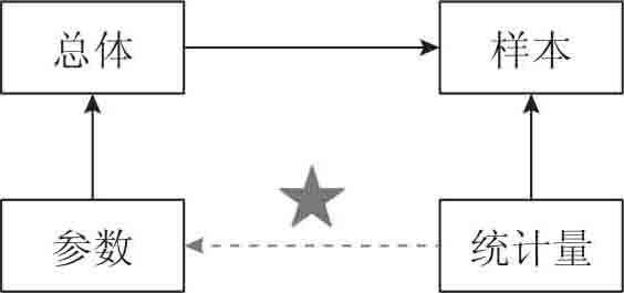 一般而言,我们进行科学研究直接获取到的仅是样本的统计量而已,可是我们的研究目的却是想获知总体的属性特征,即总体参数。统计学存在的核心价值就在于可以通过描述样本的统计量去推断描述总体的参数,这是通过偶然去发现必然、通过一般去发现普遍,这是以小见大的过程。参数与统计量的关系如图1-1所示。
