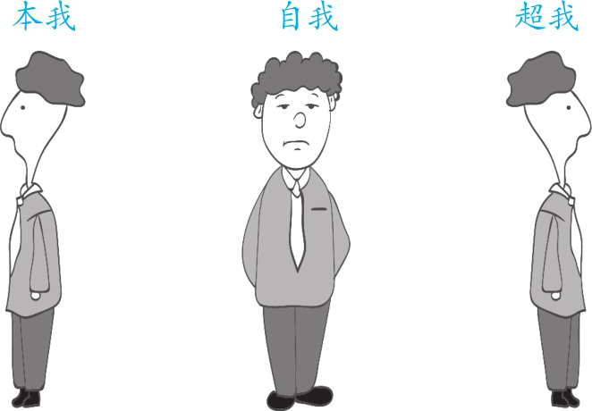 “一个人的好坏成败永远离不开他的行为,而一个人的行为又深受他心理的控制。”弗洛伊德老师说,“意识到了这一点,我就提出心理可被分为三部分:本我,自我和超我。”(见图1-10)