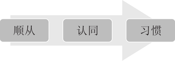 巴甫洛夫老师认为,习惯的形成大致分为三个阶段。第1天到第7天为第一阶段,我们把它称作顺从。即,我们尽力地使自己表现得与新的要求一样,但是实质上没有发生任何改变。通常情况下,新习惯最初是在外界压力和环境影响下形成的,很少出自主观意识。而第7天到第21天属于第二阶段,认同(见图2-5)。