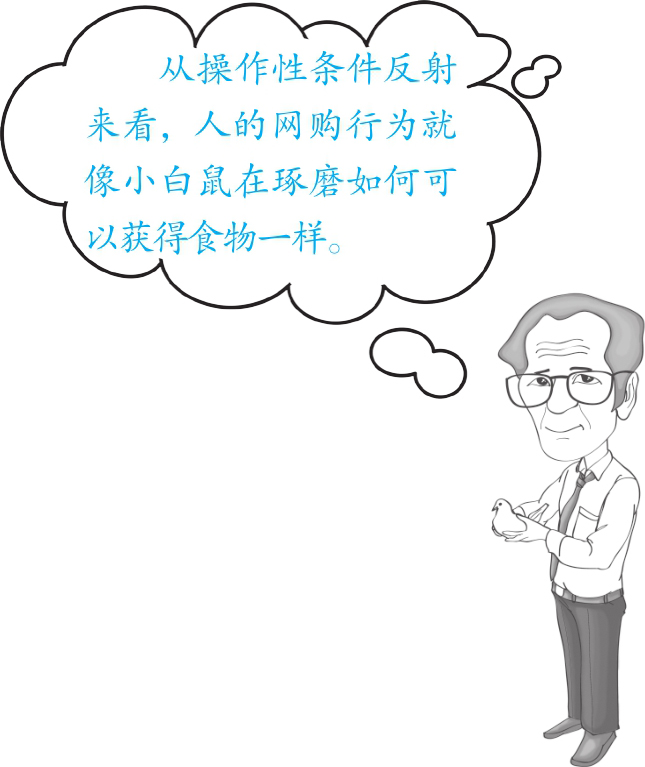“让我们再回到网购这个话题上来。按照我的操作性条件反射来看,网购行为就像小白鼠在琢磨如何可以获得吃的一样。