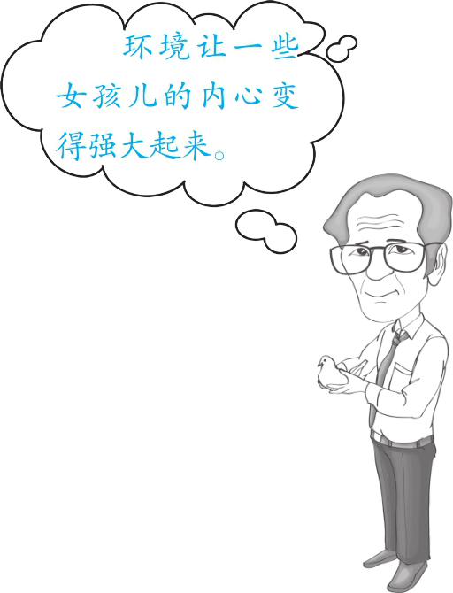 斯金纳老师说:“女汉子的生长环境大多都很艰苦,要是在艰苦的环境下不能做到自食其力,就算你是一个手无缚鸡之力的小女孩,也会受到欺辱,比如,一些农村的女孩在很小的时候已经学会了自己做饭和照顾小弟弟小妹妹,甚至还会去地里耕田或者外出打工。如果不这么做,她们需要面临的就是饥肠辘辘的夜晚,以及父母的指责批评。她们的内心可能也很渴望洋娃娃和漂亮的公主裙,可家境不允许。久而久之,她们习惯了这种生活,变成了一个个内心强大无比的女汉子。”(见图3-8)