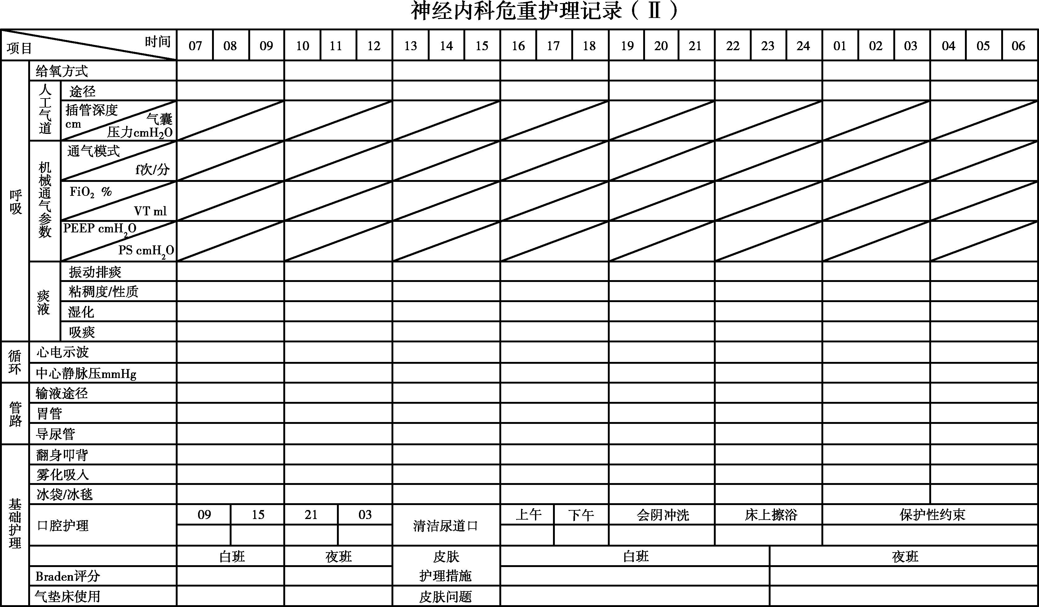 图2-2-2 神经内科危重护理记录(Ⅱ)